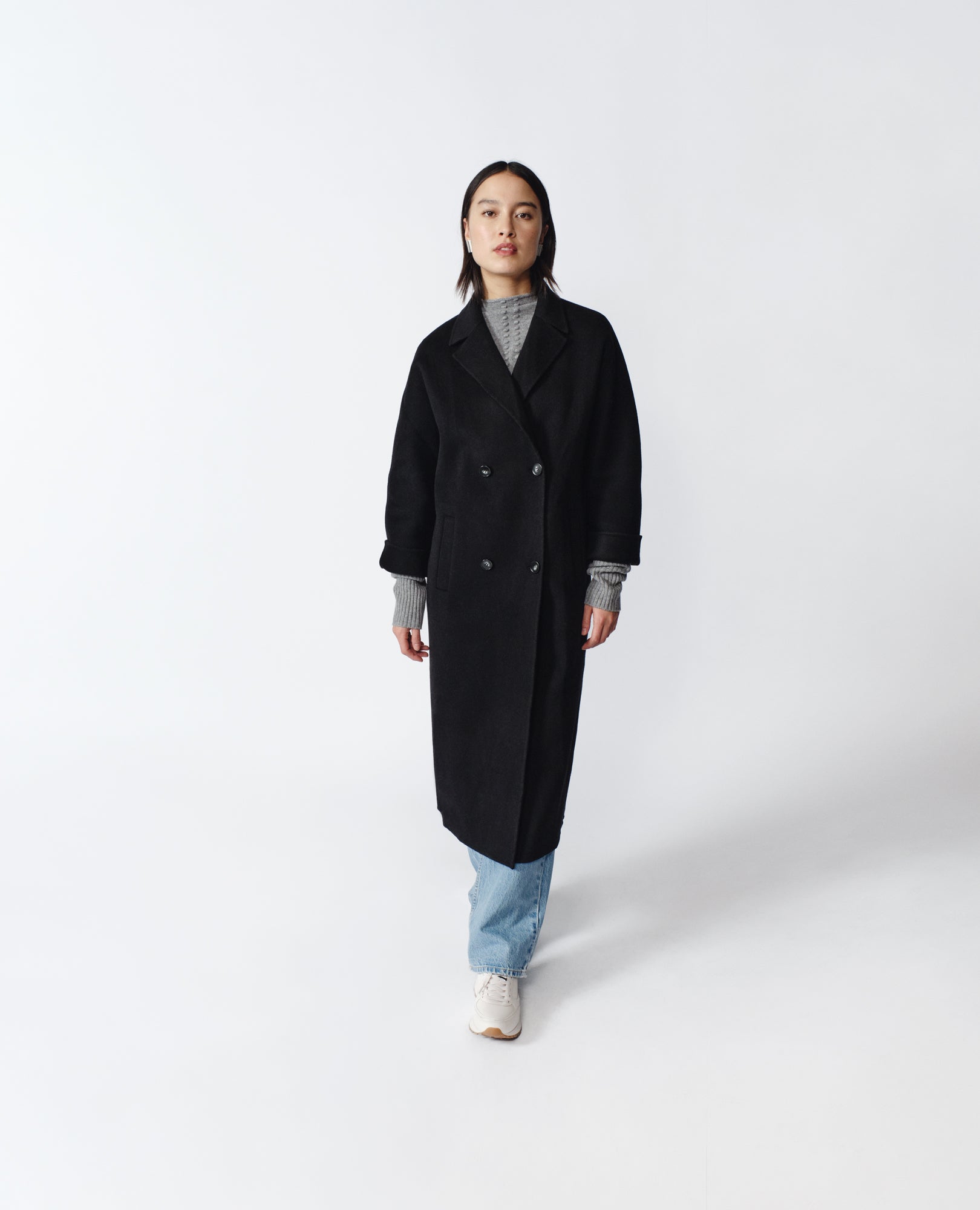 Introducing a luxurious cashmere and wool coat to keep you warm all season long. This soft and chic outer layer buttons in the front and includes two oversized pockets (perfect for holding your phone), a folded collar, and a waist belt.