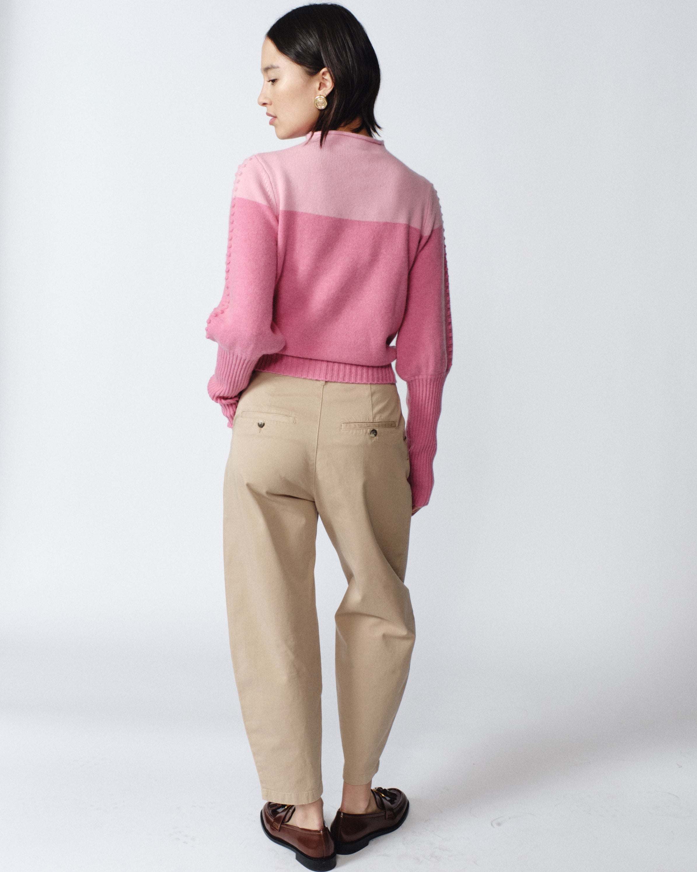 The Chelsea Sweater is our semi-cropped take on the classic crewneck—knitted from plush cashmere with billowy sleeves and a vintage bubbled detail that can be worn at the front or back.