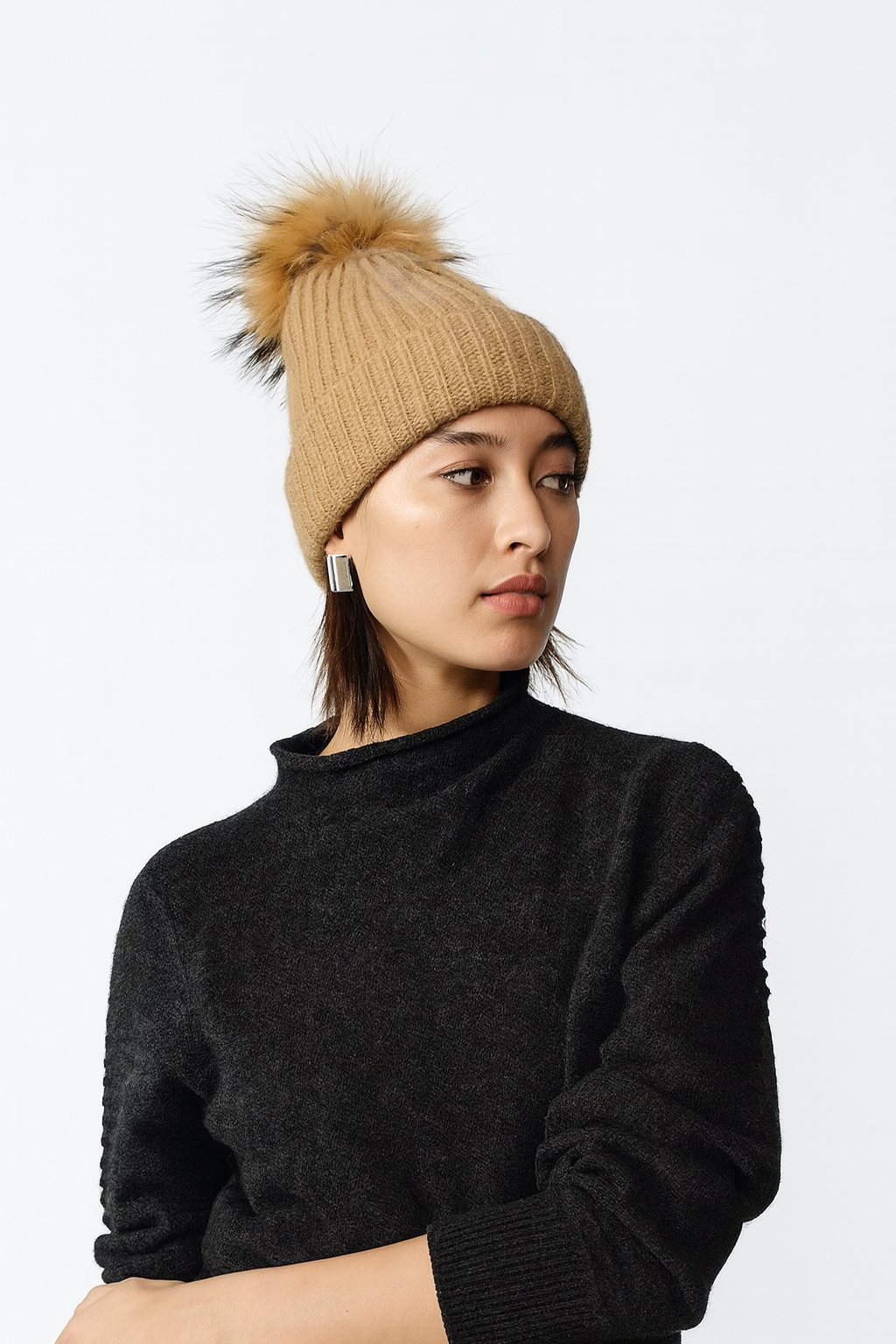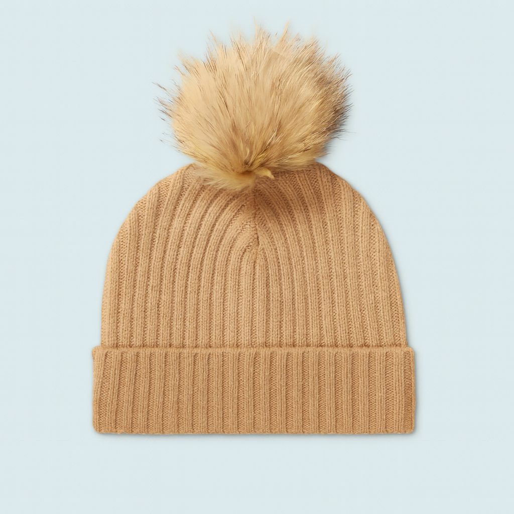 Cashmere Pom Beanie — Camel