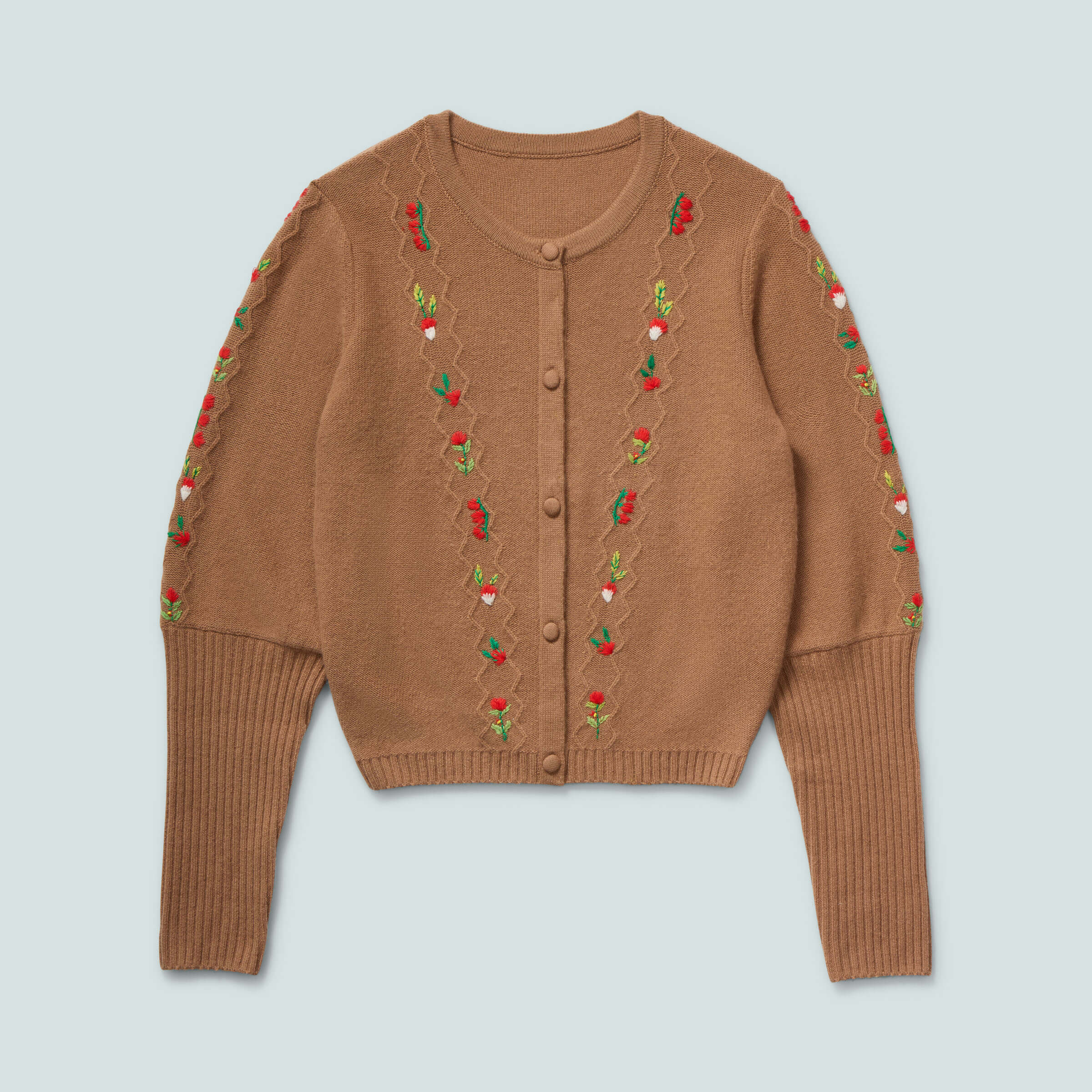 An elevated take on our Chelsea cardigan, enriched with delicate embroidered accents for a touch of sculptural elegance.