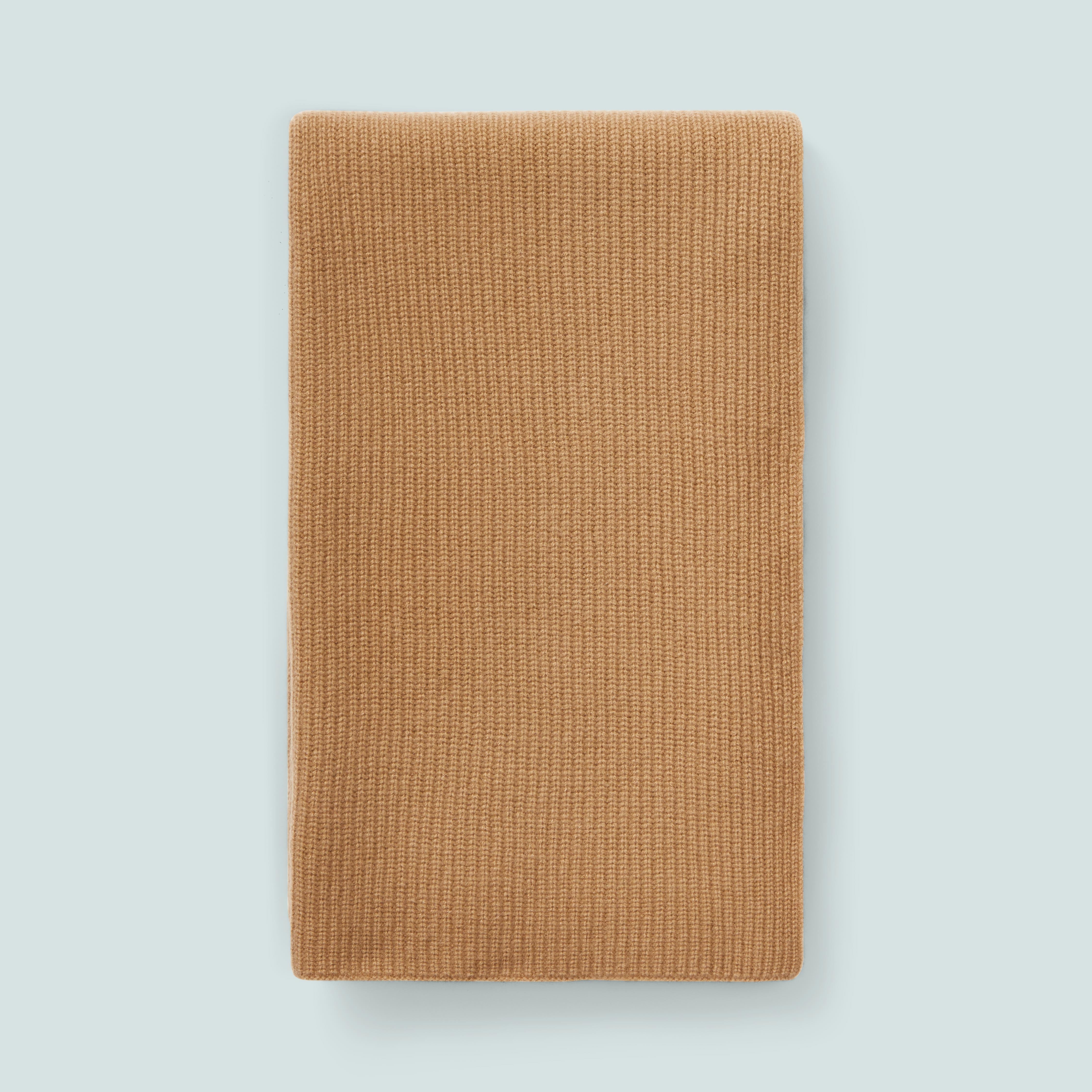 The scarf of the season. Thick flat knitted scarf with a smooth texture. Reversible two tones for all shades of beige and neutral outfits.